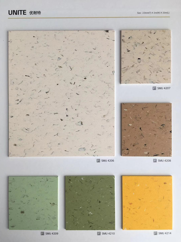 項目采用韓國LX Hausys(原LG Hausys)優耐特系列和福耐系列PVC地板,優耐特系列為同質透心地板。采用UV表面涂層,高密度PUR表面處理,提高耐污性能及耐刮劃性能,通過歐洲標準的耐磨測試(EN660-2)耐磨等級P及(groupP),不含鄰苯二甲酸脂及重金屬,生產過程不添加有害成分,使用100%不含鄰苯二甲酚酸酯的PVC材料。優秀的設計,雙底色與雙顆粒大理石紋技術,大理石花紋技術以撫慰心靈,不含鄰苯二甲酸脂及重金屬,生產過程不添加有害成分, 使用100%不含鄰苯二甲酚酸酯的PVC材料。應用場景:教育,醫院,購物中心。
